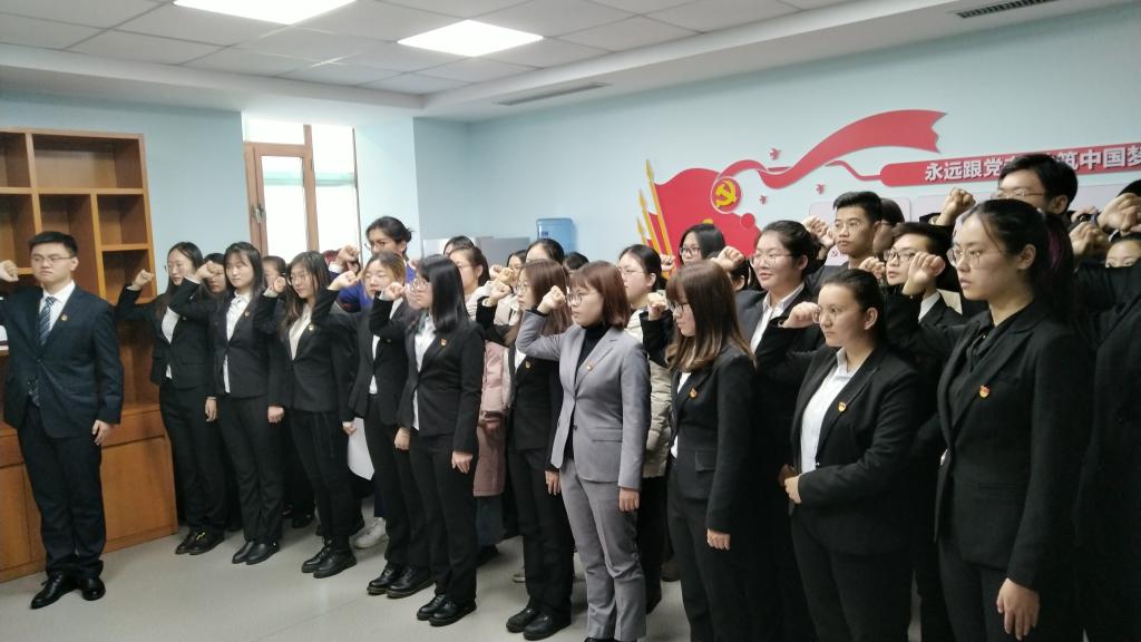 2019年12月12日上午,我院本科生党支部在东荣大厦“党员之家”举办了入党宣誓仪式,学院党委副书记赵勇同志、支部书记田仲金同志、支部书记刘晋禹同志以及2016级和2017级本科生党支部的40名预备党员参加了本次仪式。