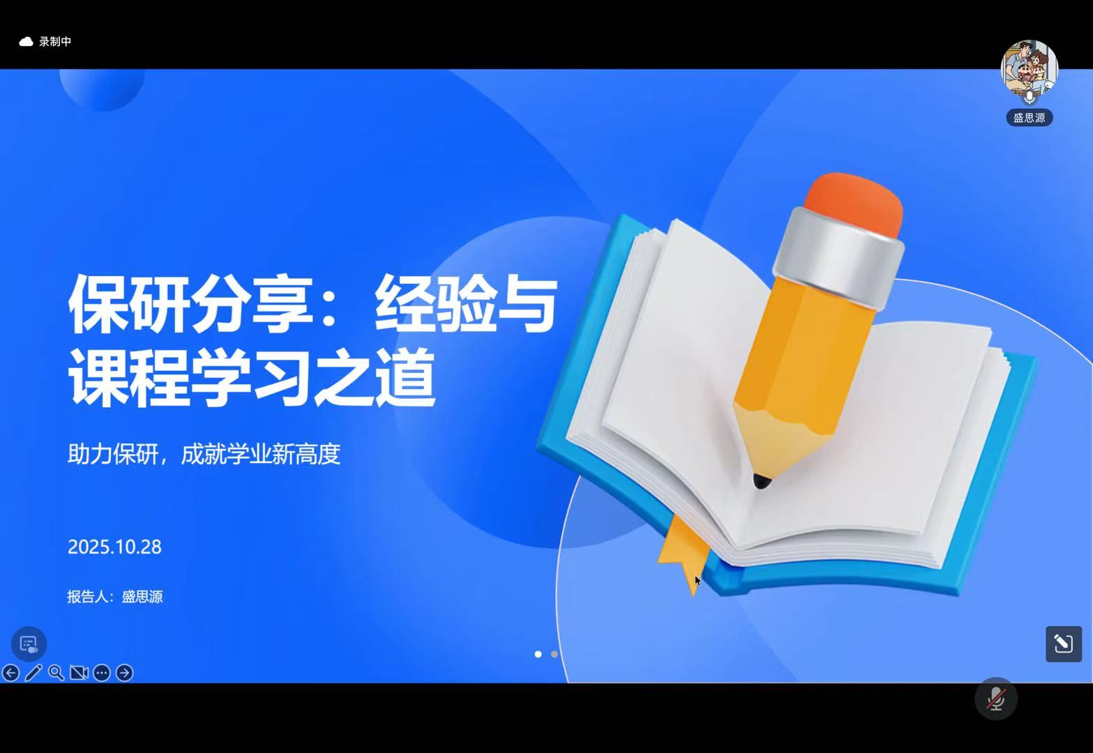 2025年10与28日晚,金融2班在班主任冯永琦老师的指导下开展了一场“保研和学习经验交流与分享会”。共三位学长学姐为同学们讲述了自己的宝贵经验,强调了保研是一场信息战与持久战,明确的规划、扎实的准备与高效的执行三者缺一不可。